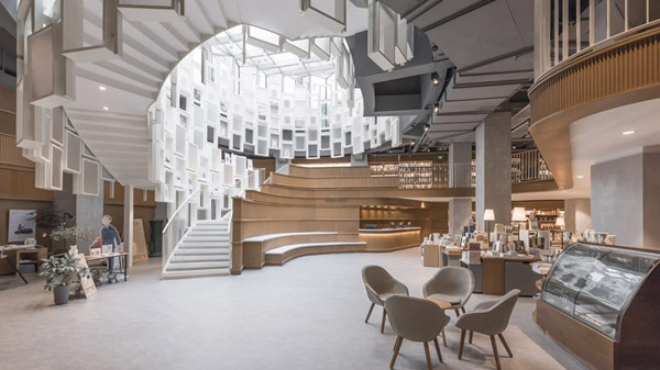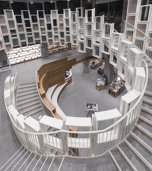 由意大利建筑設(shè)計公司 Kokaistudios 創(chuàng)造充滿設(shè)計感的筑蹊生活書店,位于浙江省第二大城市寧波市中心,1844 藝術(shù)生活中心廣場地下,建筑第一眼就已經(jīng)讓人留下深刻印象,由扇形玻璃排列出現(xiàn)代化外觀,也呼應(yīng)內(nèi)部 L 型內(nèi)部半透明壓克力板、水泥地面的原色低彩。